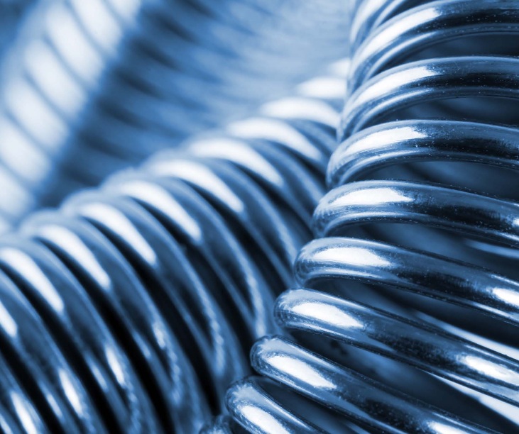 Pružiny vyrábíme z patentovaného pružinového materiálu dle normy EN10270 - 1 v průměrech 0,16 až 11,8 mm. Dle dohody do průměru 32 mm z kvalitních kalitelných materiálů SCH 14.260, 50CrV4. Dále z nerezového pružinového drátu normy EN 10270 - 3, v průměru 0,16 až 8 mm, případně pružinový bronz CuSn6 v průměru 0,25 až 8 mm.